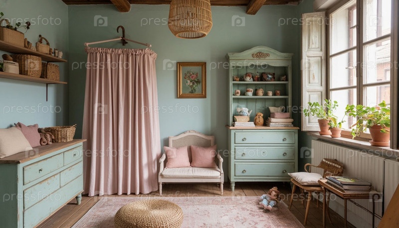 Спальня в пастельных тонах бежевого и белого цвета. Генерируется ИИ
