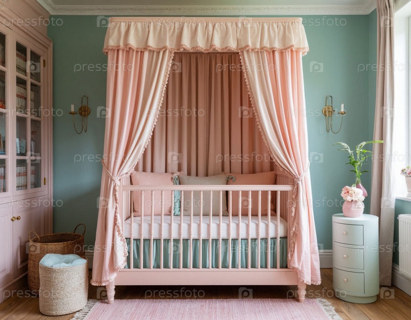 Маленькая детская кроватка в пастельных тонах. Генерируется ИИ