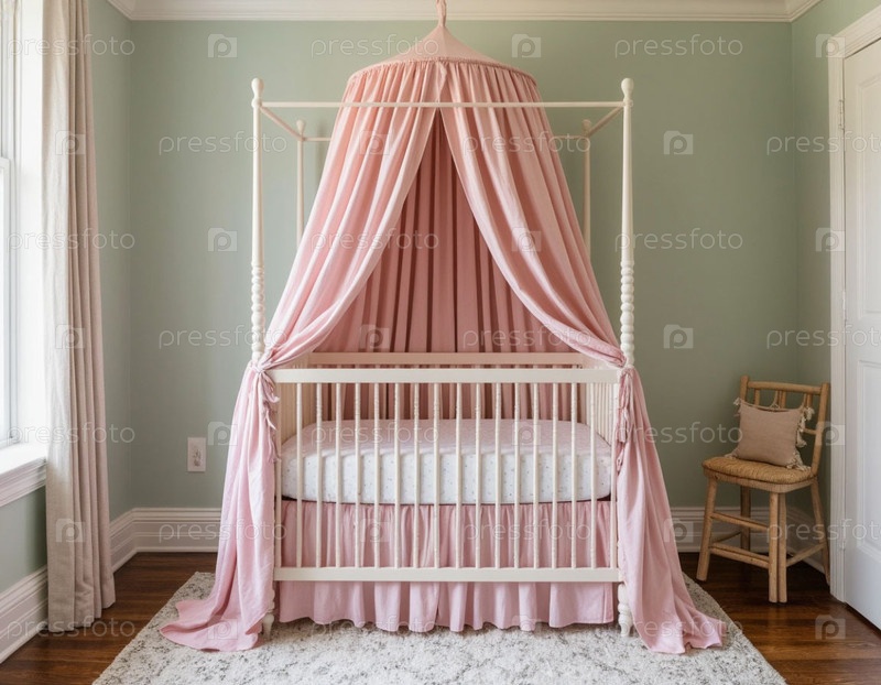 Маленькая детская кроватка в пастельных тонах. Генерируется ИИ