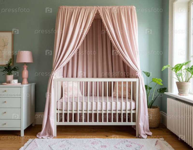 Маленькая детская кроватка в пастельных тонах. Генерируется ИИ