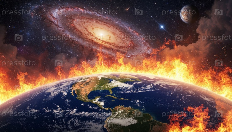 Конец Вселенной, планета Земля горит. Сгенерированный ИИ