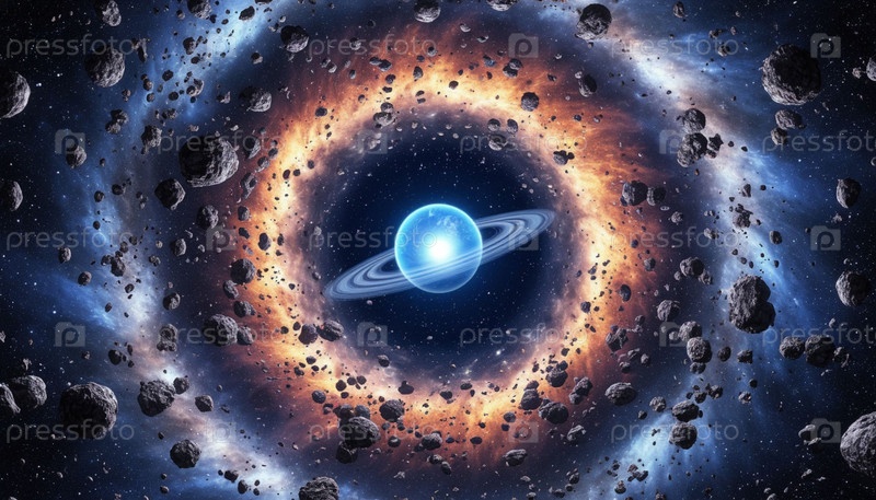 Рождение новой галактики с центральной планетой. Сгенерированный ИИ