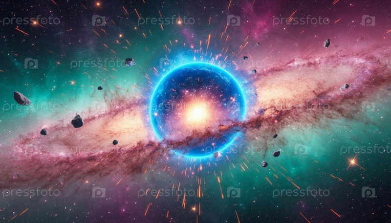 Рождение планеты Земля в центре галактики на абстрактном фоне. Сгенерировано