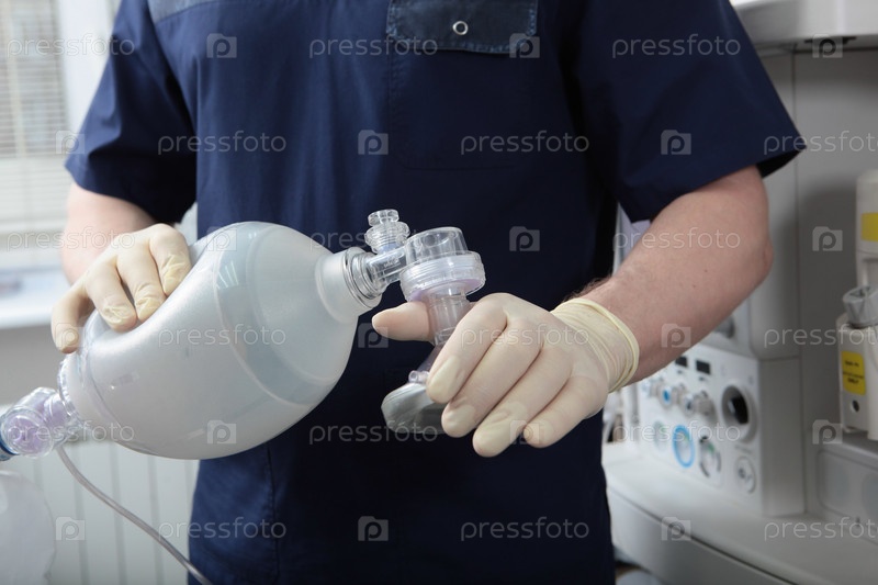 Врач интенсивной терапии готовит оборудование для искусственной вентиляции легких. Подготовка к операции. Вентиляционный мешок для дыхания. Оборудование для анестезии и интенсивной терапии