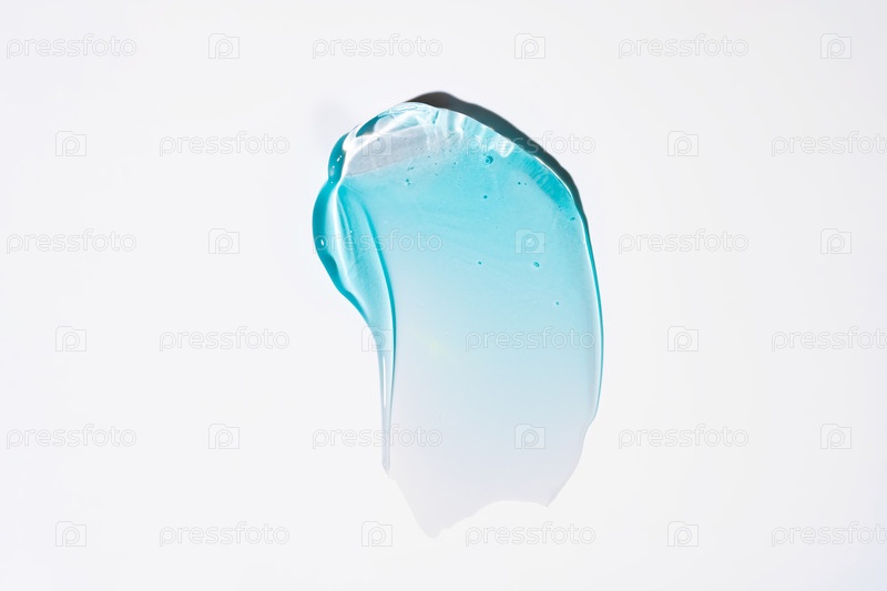 Чисто размытый прозрачный косметический гель мазок на белом фоне, уход за кожей глицериновая текстура. вид сверху