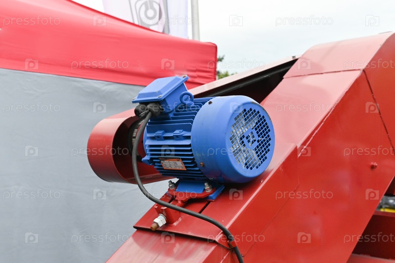 Двигатель установлен на синем моторизованном оборудовании