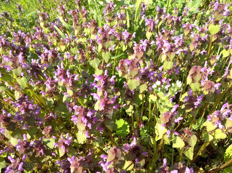 Полевые цветы с фиолетовыми лепестками на закате. Красота на природе на закате или рассвете. красивые цветущие растения на полях и лугах. пышная растительность. Яснотка пурпурная (лат. Lámium purpúreum), также известная как 'глухая крапива'