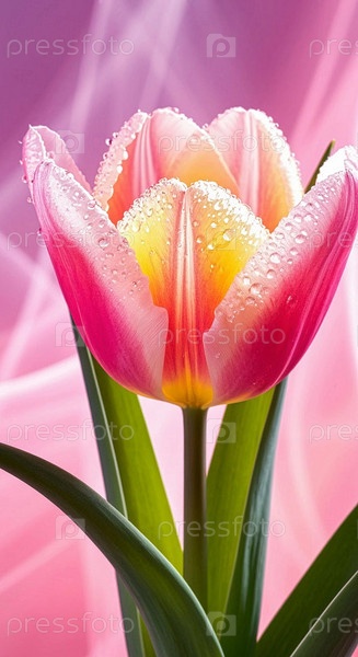 Тюльпан нежного цвета крупным планом. Макро тюльпан бутон цветка, в каплях росы