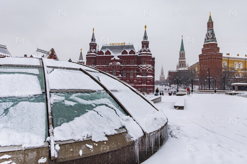 Зимний вид на Манежную площадь и Арсенальную башню Кремля, Москва