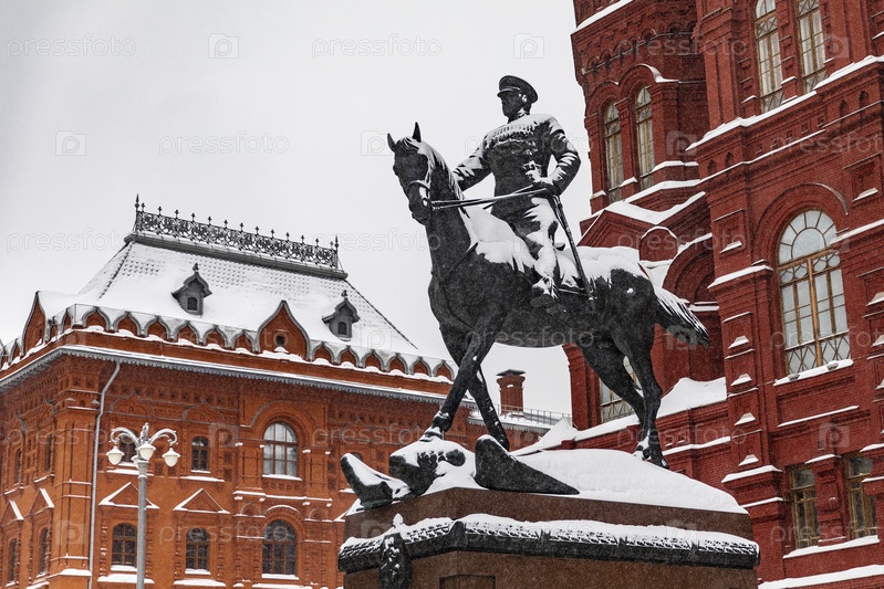 Памятник маршалу Жукову у Государственного исторического музея зимой, Москва