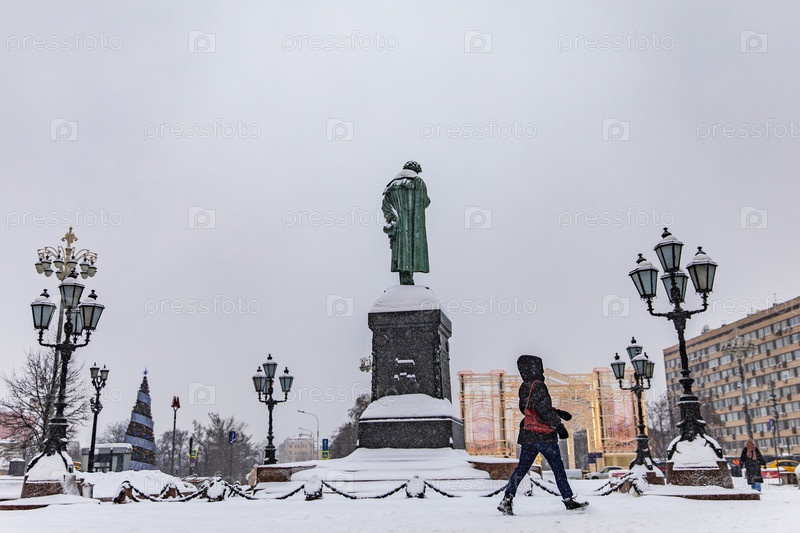 Памятник А. С. Пушкину на Пушкинской площади зимой, Москва