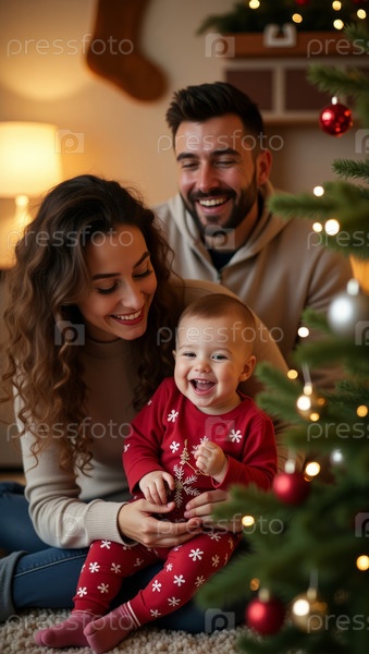Семейный декор Рождественская елка вместе в уютной гостиной ночью