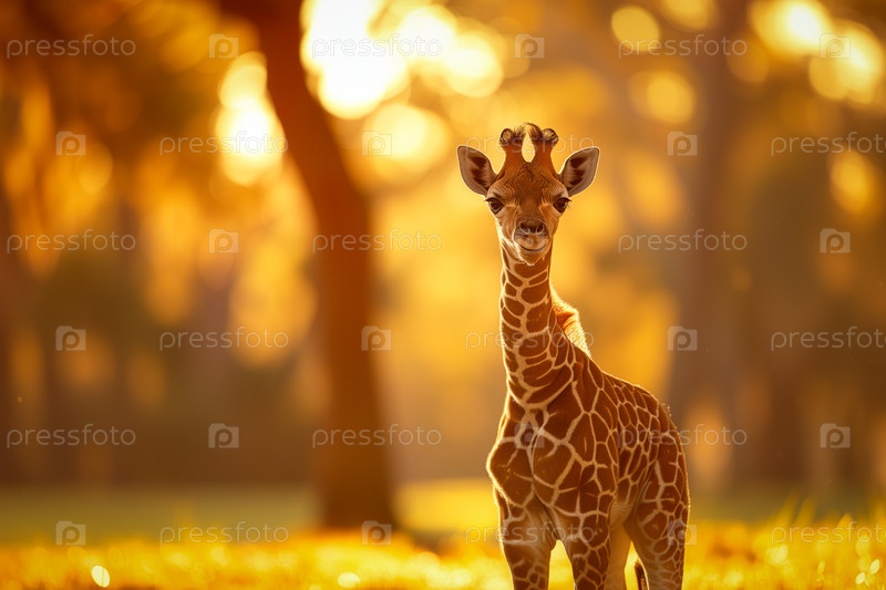 Малыш жираф в золотом закате