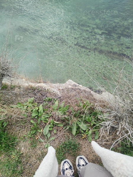 Вид со скалы на чистую воду — природа, побережье, трава, фон, обои