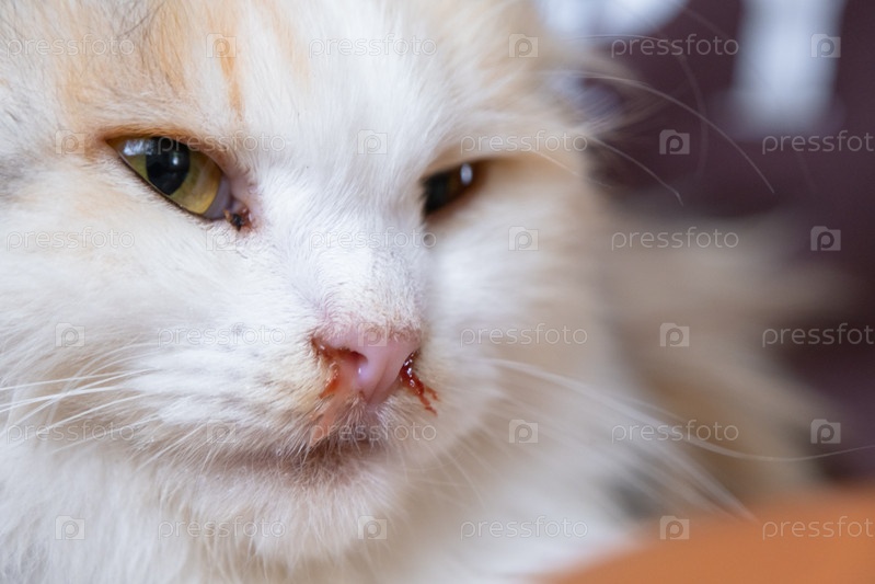 Кровавые сопли из носа белой кошки, ветеринарное лечение аллергии, насморк, повреждение носовой перегородки, воспаление и инфекция