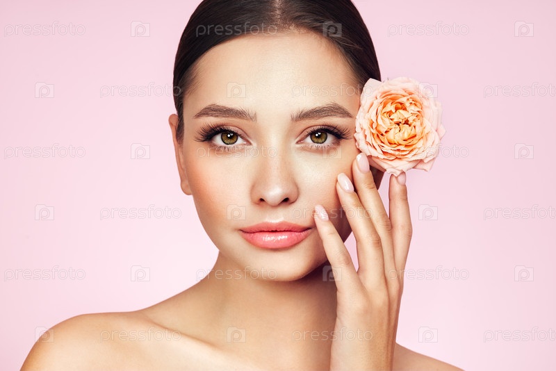 Красивая молодая женщина с цветком розы