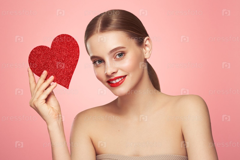 Красивая женщина с искусственным красным сердцем