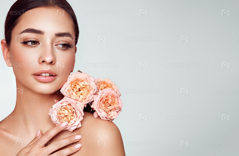 Красивая молодая женщина с цветком розы
