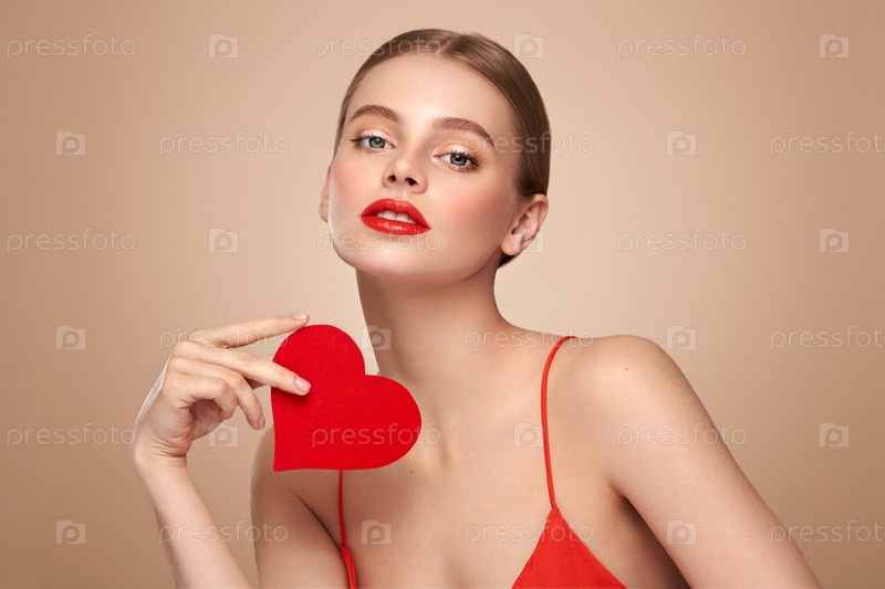 Красивая женщина с искусственным красным сердцем