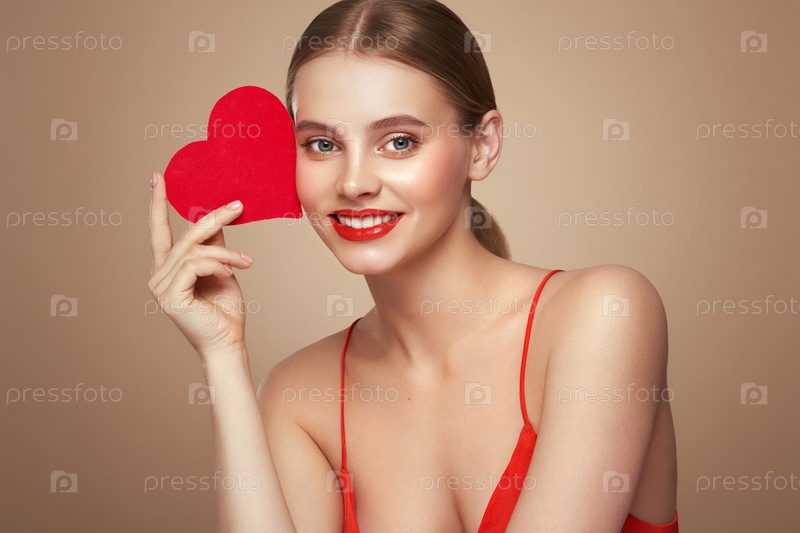 Красивая женщина с искусственным красным сердцем