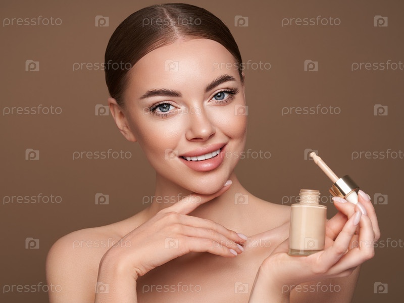 Портрет красивой молодой женщины с бутылкой