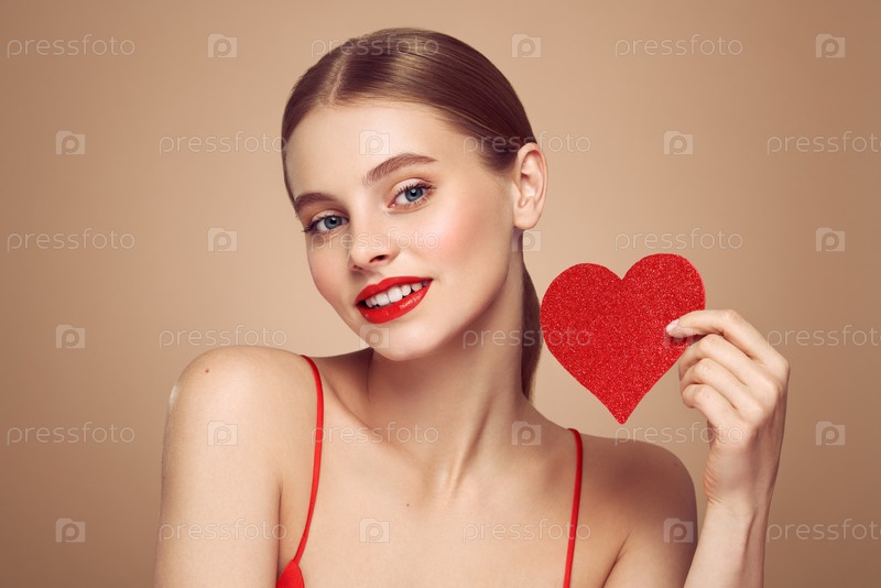 Красивая женщина с искусственным красным сердцем