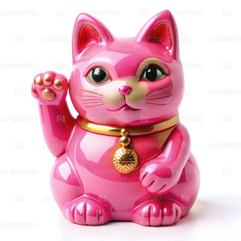 Фигурка розовой кошки с золотым воротником Генерирующий ИИ