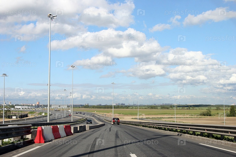 Кольцевая дорога с машинами в Санкт-Петербурге
