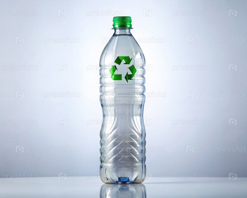 Бутылка воды с оборотным символом. Генерирующий ИИ