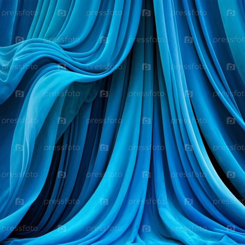 Занавес с мягкими плавными плавными складками. Глубокий синий цвет и роскошная текстура создают драматическую и элегантную атмосферу. Декорация и дизайн интерьера. Дорогой занавес из богатой ткани. ИИ