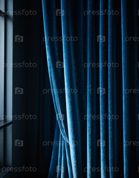 Занавес с мягкими плавными плавными складками. Глубокий синий цвет и роскошная текстура создают драматическую и элегантную атмосферу. Декорация и дизайн интерьера. Дорогой занавес из богатой ткани. ИИ