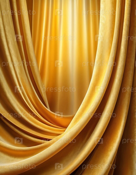 Занавес с мягкими плавными плавными складками. Глубокий желтый цвет и роскошная текстура создают драматическую и элегантную атмосферу. Декорация и дизайн интерьера. Дорогой занавес из богатой ткани. ИИ