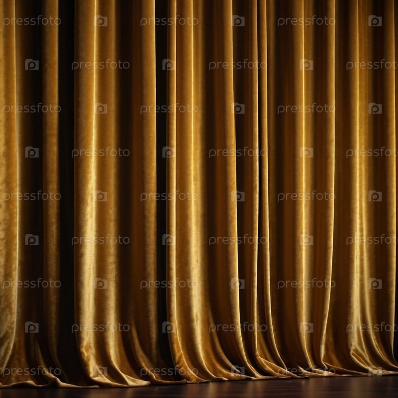 Занавес с мягкими плавными плавными складками. Глубокий золотой цвет и роскошная текстура создают драматическую и элегантную атмосферу. Декорация и дизайн интерьера. Дорогой занавес из богатой ткани. ИИ