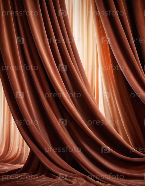 Занавес с мягкими плавными плавными складками. Глубокий коричневый цвет и роскошная текстура создают драматическую и элегантную атмосферу. Декорация и дизайн интерьера. Дорогой занавес из богатой ткани. ИИ