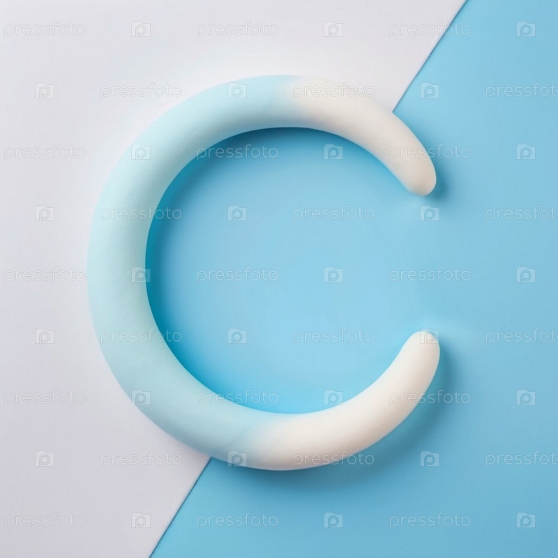 Сине-белый изогнутый объект, напоминающий букву С, размещается на разделенном фоне синего и белого. Объект находится на синей стороне фона и создает круглую форму. Сгенерированный ИИ. Копируйте пространство