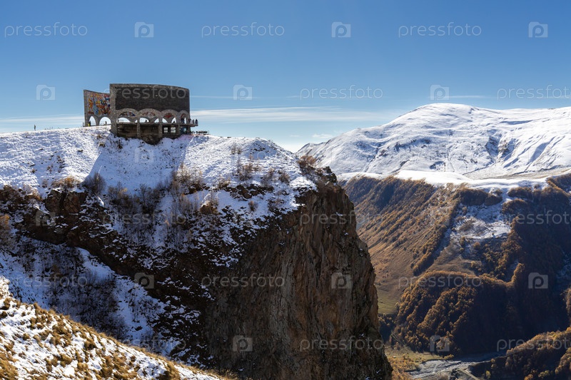 Панорамный вид на Кавказские горы и арку дружбы народов