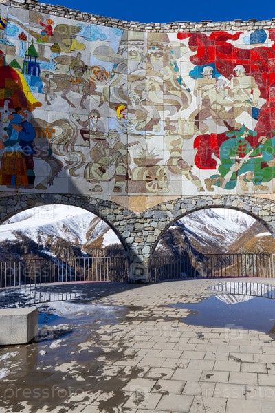 Мозаичная панель Арки дружбы народов Грузии, горы Кавказа
