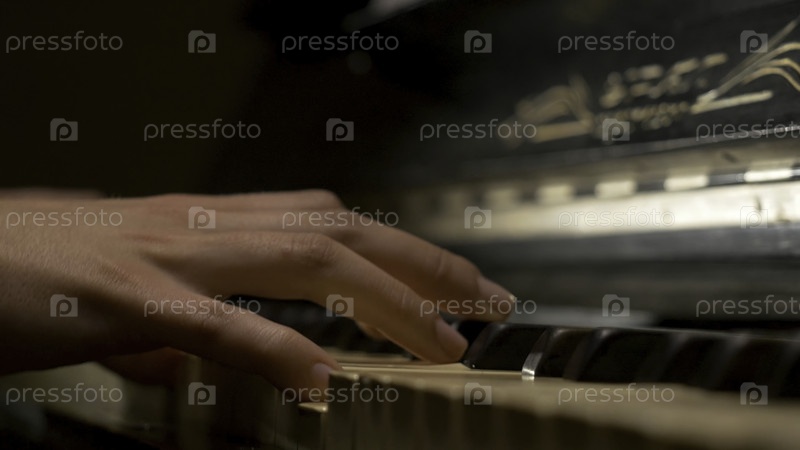 Молодая женщина играет на фортепиано крупным планом. Пианист, играющий на музыкальных инструментах, детали с крупным планом руки игрока