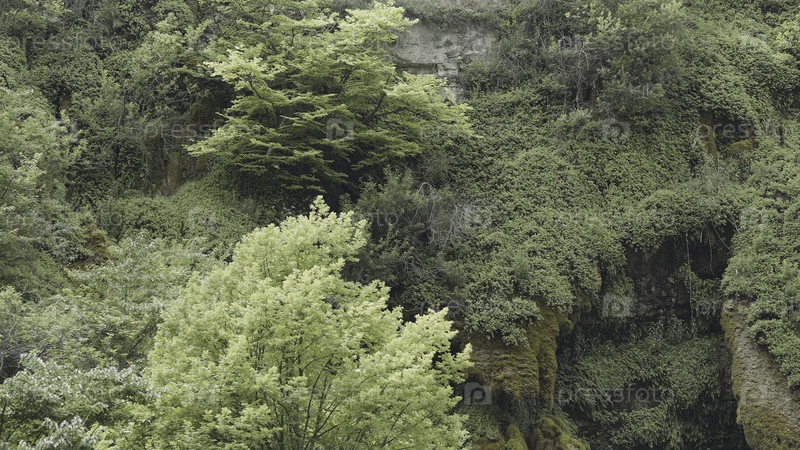 Красивые скалы с зелеными растениями и мхами. Действуй. Горы со скалами и зеленой растительностью. Красивые скалистые пейзажи с разнообразием зелени