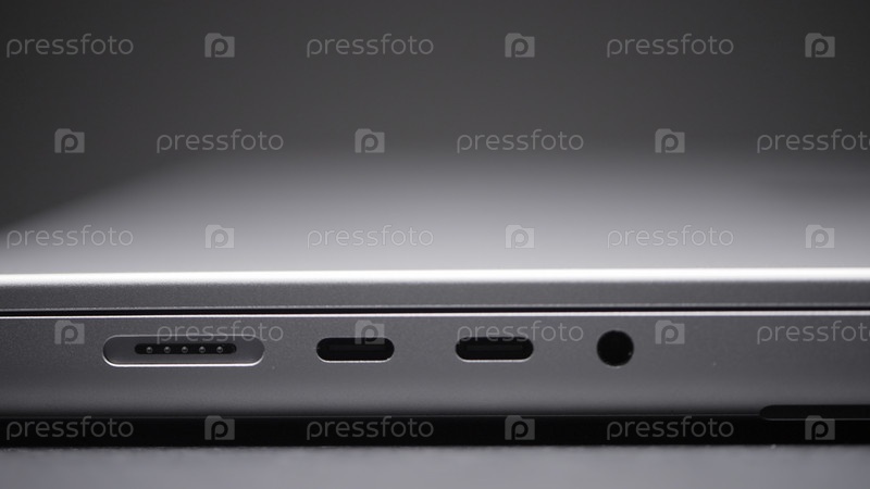 Серый ноутбук. Действуй. Детальная съемка деталей ноутбука со всеми его разъемами. Качественные 4k кадры
