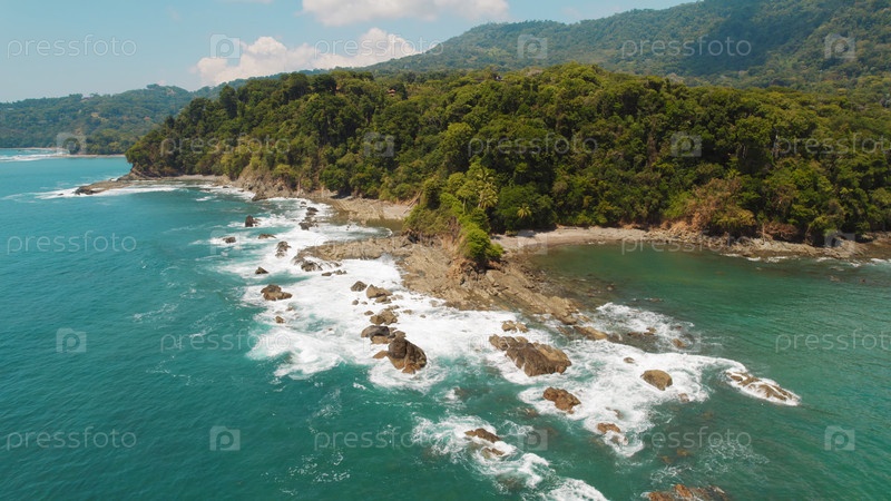 Побережье скалистых джунглей на тропическом пляже с живописным видом на океанские волны в замедленном движении