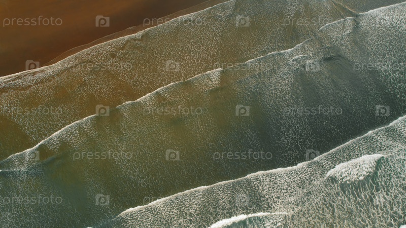 Вид с воздуха на волны Тихого океана, образующие текстуры на тропическом песчаном пляже