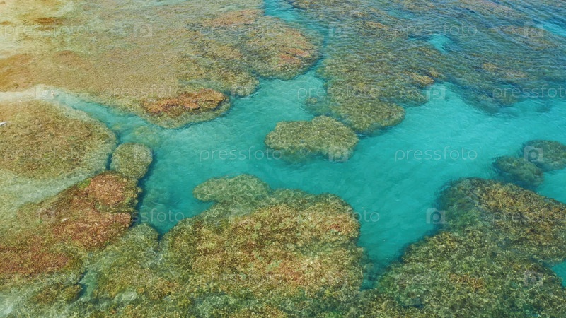 Вид с воздуха на яркую лагуну коралловых рифов на карибском побережье Коста-Рики