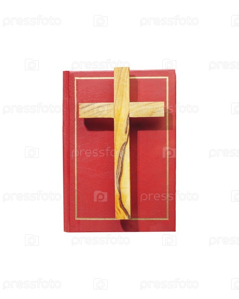 Деревянный христианский крест в красном обложке Библия изолирована на прозрачном фоне