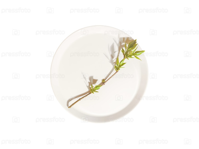 Маленькая зеленая спрута на белой пластине, изолированная на прозрачном фоне. Минималистический ботанический элемент для экологически чистого брендинга, весеннего сезона и современной органической графики