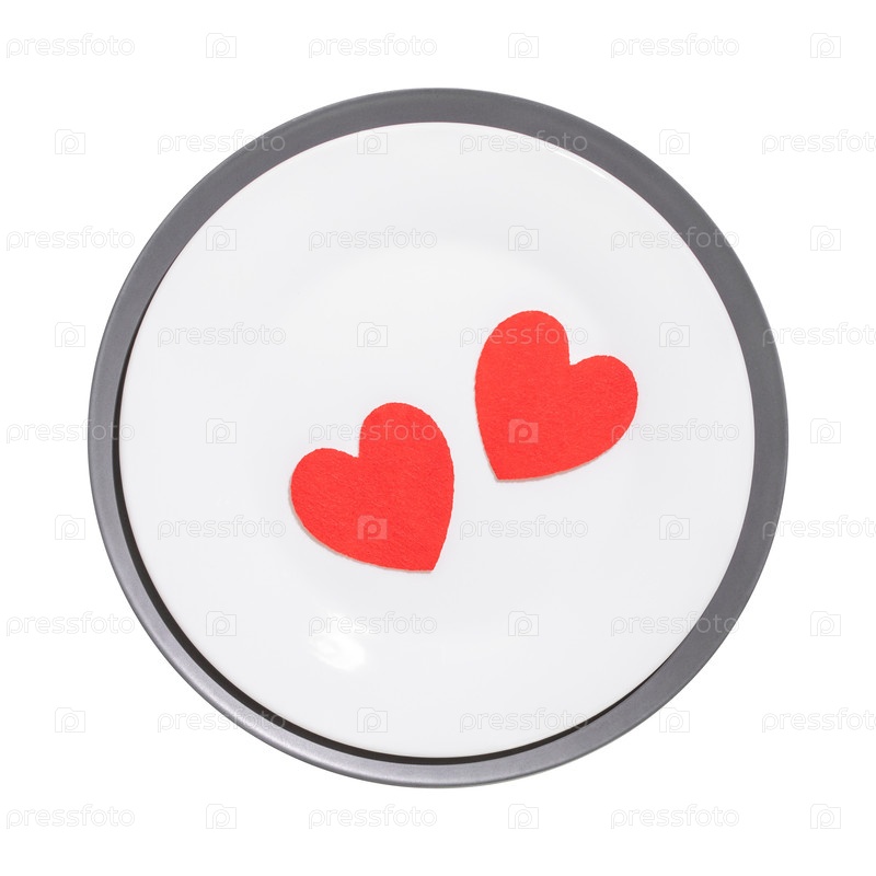 Два красных сердца на изолированной белой пластине на прозрачном фоне