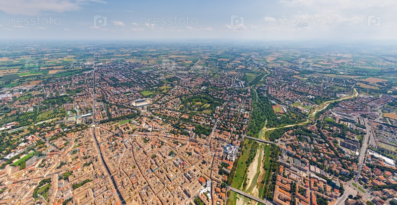 Парма, Италия. Исторический центр. Панорама города в летний день. Солнечная погода. Вид с воздуха