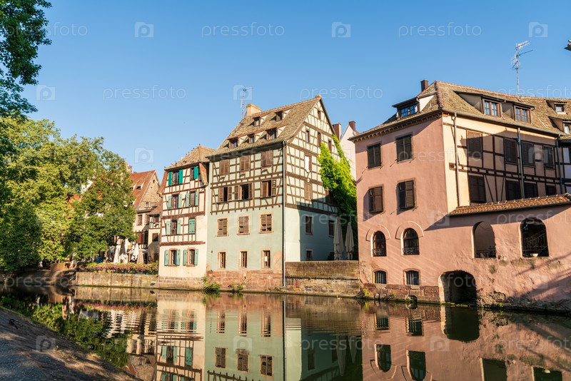 Страсбург, Франция. Маленький квартал Франции. Исторические дома на берегу реки Илль