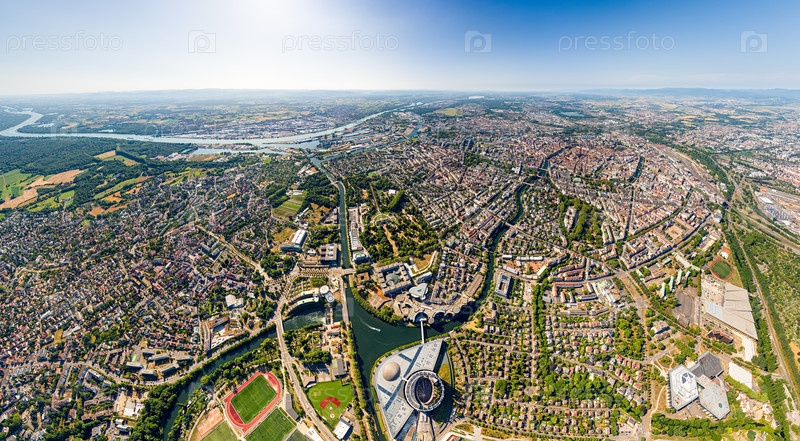 Страсбург, Франция. Панорама города в летний день. Солнечная погода. Вид с воздуха