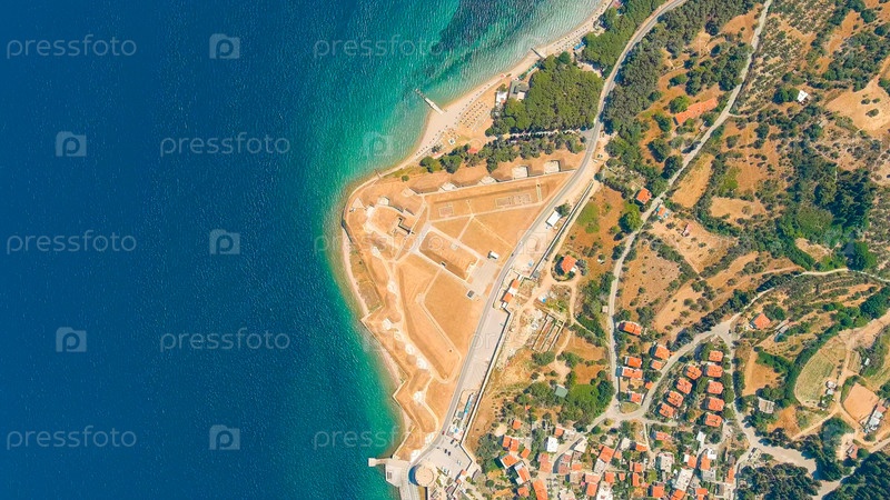 Килитбахир, Турция. Бастион Намазгах, крупнейшая береговая артиллерийская батарея 19-го века, со средневековым замком Килитбахир. Вид с воздуха